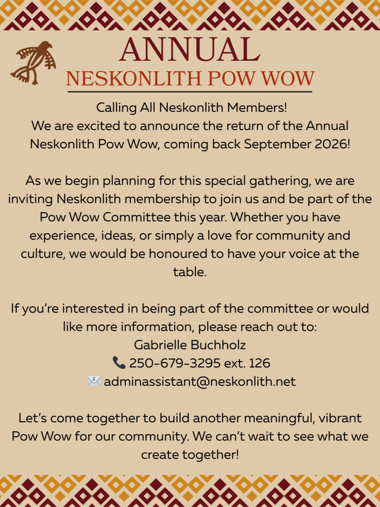 Neskonlith Administration is committed to working together to promote a healthy relationship with our Neskonlith community.